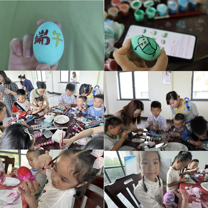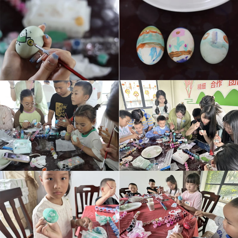 A empresa preparou cuidadosamente deliciosos ovos de pato salgados, tintas coloridas e pincéis delicados para as crianças, para que as crianças pudessem pintar a alegria e a diversão em seus corações.