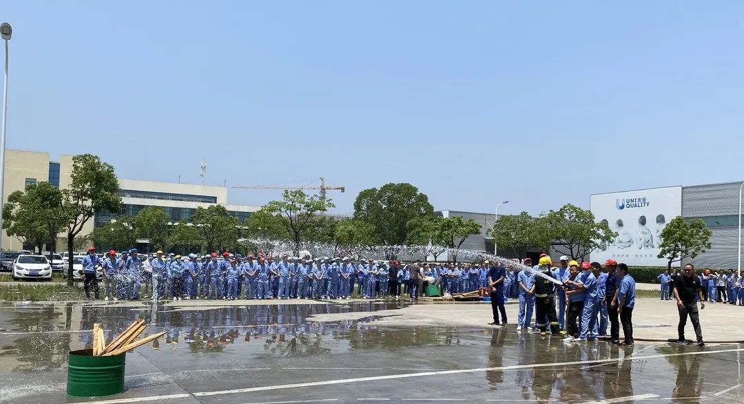 Junho deste ano é o 20º “Mês da Produção Segura” no país, com o tema “Implementando Responsabilidades de Segurança e Promovendo o Desenvolvimento Seguro”. A fim de melhorar a segurança e a qualidade do combate a incêndios, a prevenção da segurança e a capacidade de auto-resgate de todo o pessoal, esta manhã, a Uniquality Care & Kingsafe realizou um exercício de segurança de emergência contra incêndio com o auxílio do corpo de bombeiros da zona de desenvolvimento.